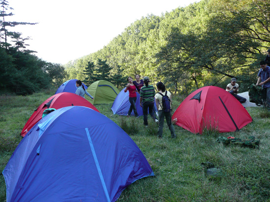 百花峪素稱天然氧吧,的確令人心曠神怡,忍不住深吸一口山間的清新空氣,驅(qū)走一身的混濁。這里沒有城市的喧鬧,沒有工作的壓力。大家都滿懷激動,躍躍欲試,期待著一個接一個自我挑戰(zhàn)的項目。