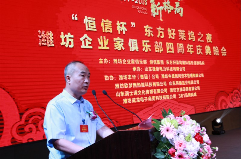 濰坊市工商聯(lián)副主席劉杰然先生向俱樂部四周年慶表示祝賀,俱樂部成立四年來,能夠圍繞濰坊經(jīng)濟發(fā)展的大局,圍繞市委、市政府的中心工作,能夠在濰坊市工商聯(lián)的悉心指導(dǎo)下,積極拓展各項工作,為濰坊市工商聯(lián)行業(yè)組織建設(shè)工作增添了濃重的一筆。希望新當(dāng)選的理事會領(lǐng)導(dǎo)班子群策群力,充分發(fā)揮俱樂部優(yōu)勢,形成千帆競發(fā)、百舸爭流的良好發(fā)展勢頭。為濰坊企業(yè)家整體形象不斷提升貢獻力量!