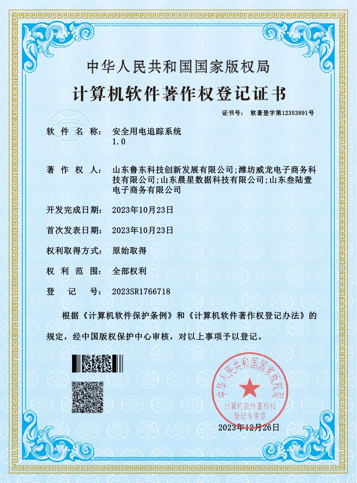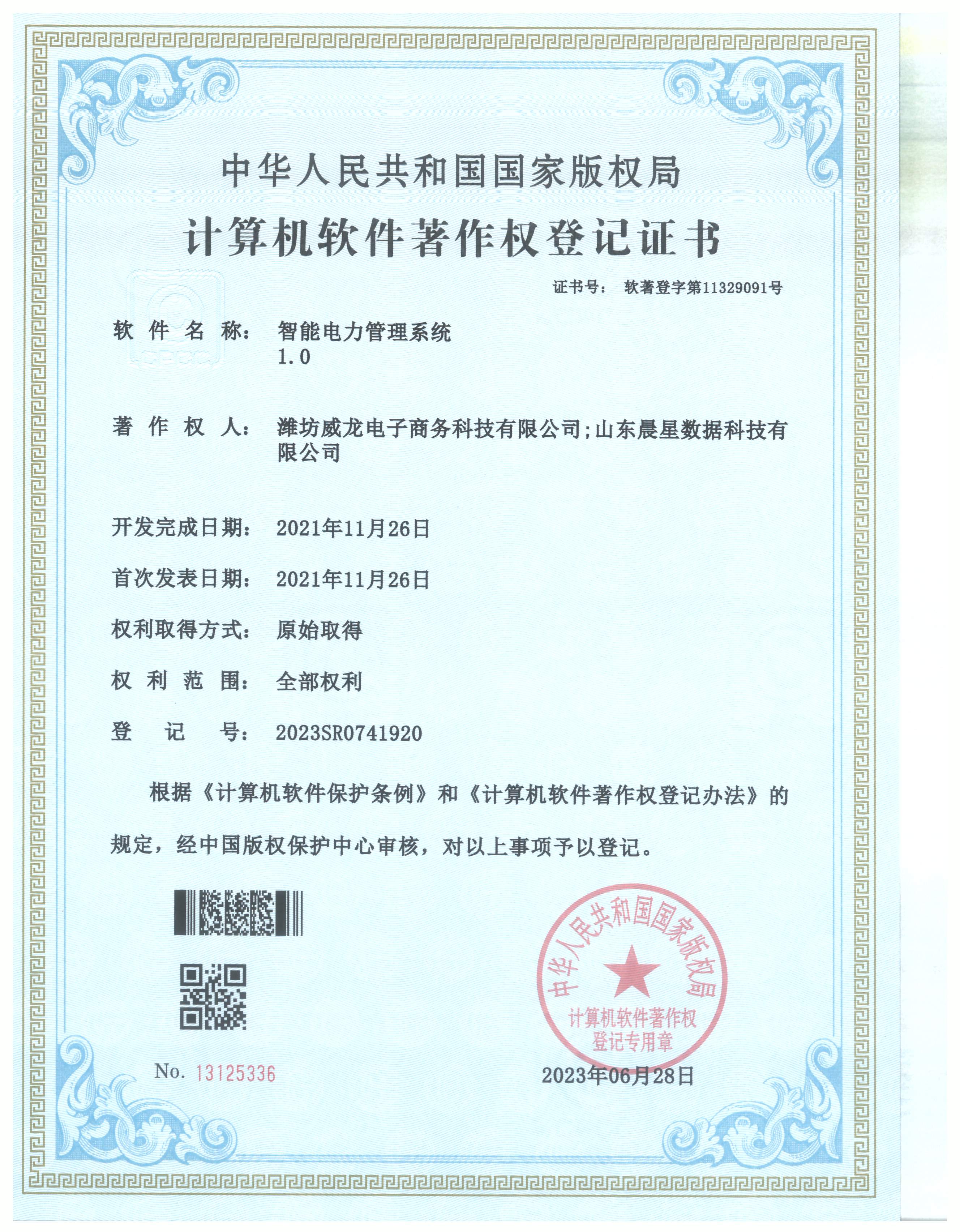 智能電力管理系統(tǒng)登記證書